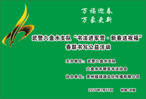 2026年1月17日上午,由武警六盘水支队,六盘水市硬笔书法协会主办,贵州福禄源文化传播有限公司协办的“万福迎春”书法进军营·新春送祝福春联书写公益活动,在武警六盘水支队喜庆开展。