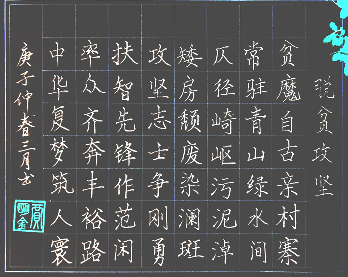 2020年3月17日,入展由中国硬笔书法学会山东办事处工委主办“投入战役,夺取全胜”大书法作品网络展